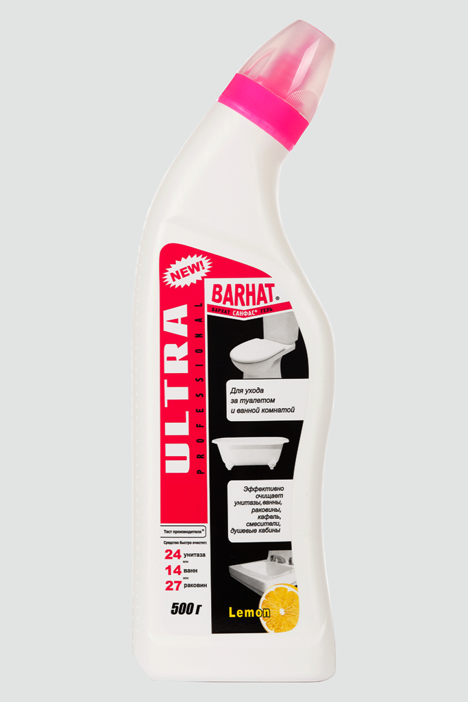Очистите и освежите вашу ванную комнату и туалет с ULTRA BARHAT Санфас гелем! Эффективное средство от российского производителя Barhat, предназначенное для глубокой очистки сантехники. Обладает приятным ароматом сочного лимона, оставляя долгосрочное ощущение свежести.