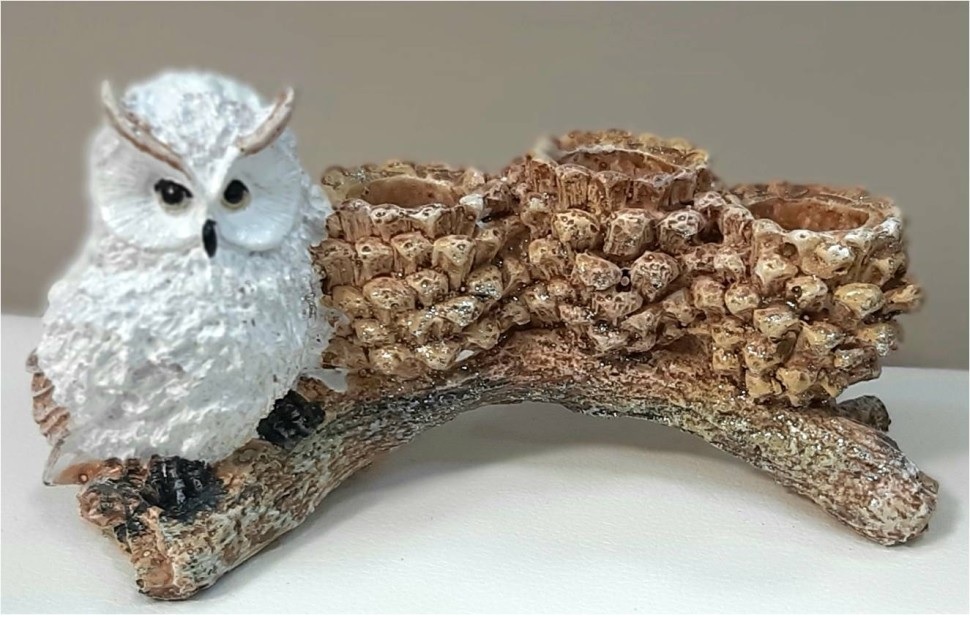 Фигура Сова с шишками на коряге НОВОГОДНЯЯ Н-10см,L-21см