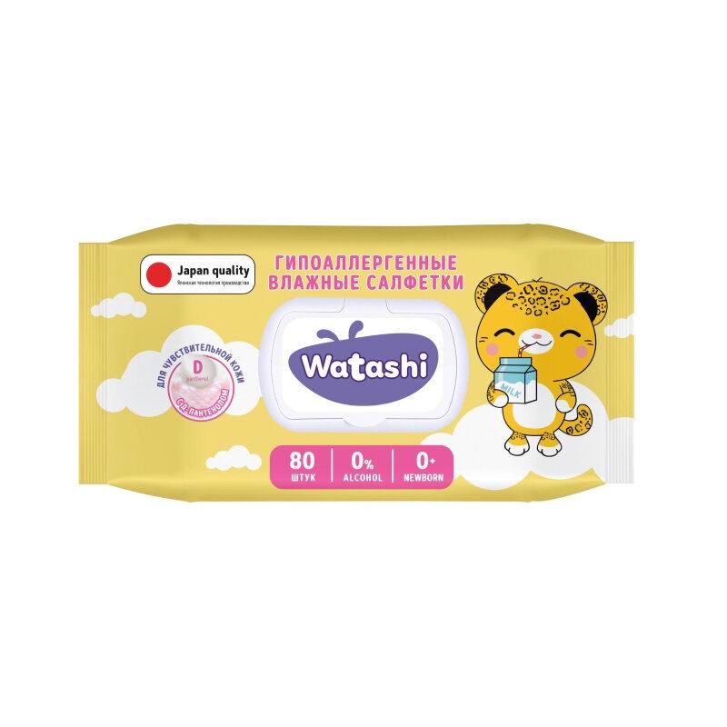 Салфетки влажные для детей WATASHI с Д - пантенолом и крышкой 80шт арт.13044