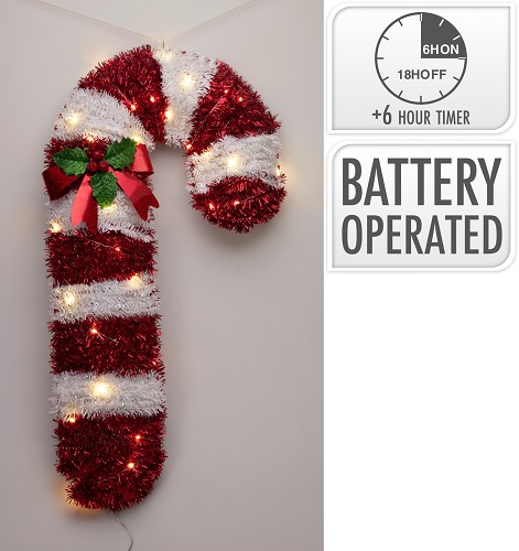 Украшение Карамельная палочка из мишуры, с подсветкой на батарейках, CAA754170