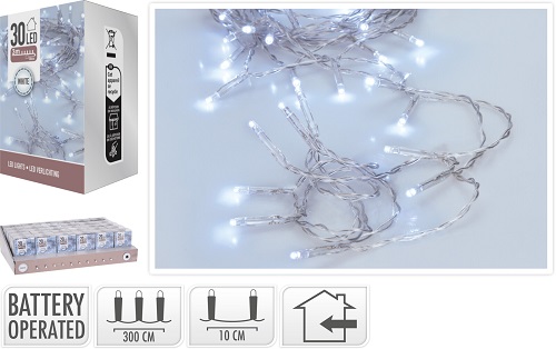 Гирлянда 30 LED цвет белый холодный, на батарейках, AX9800040