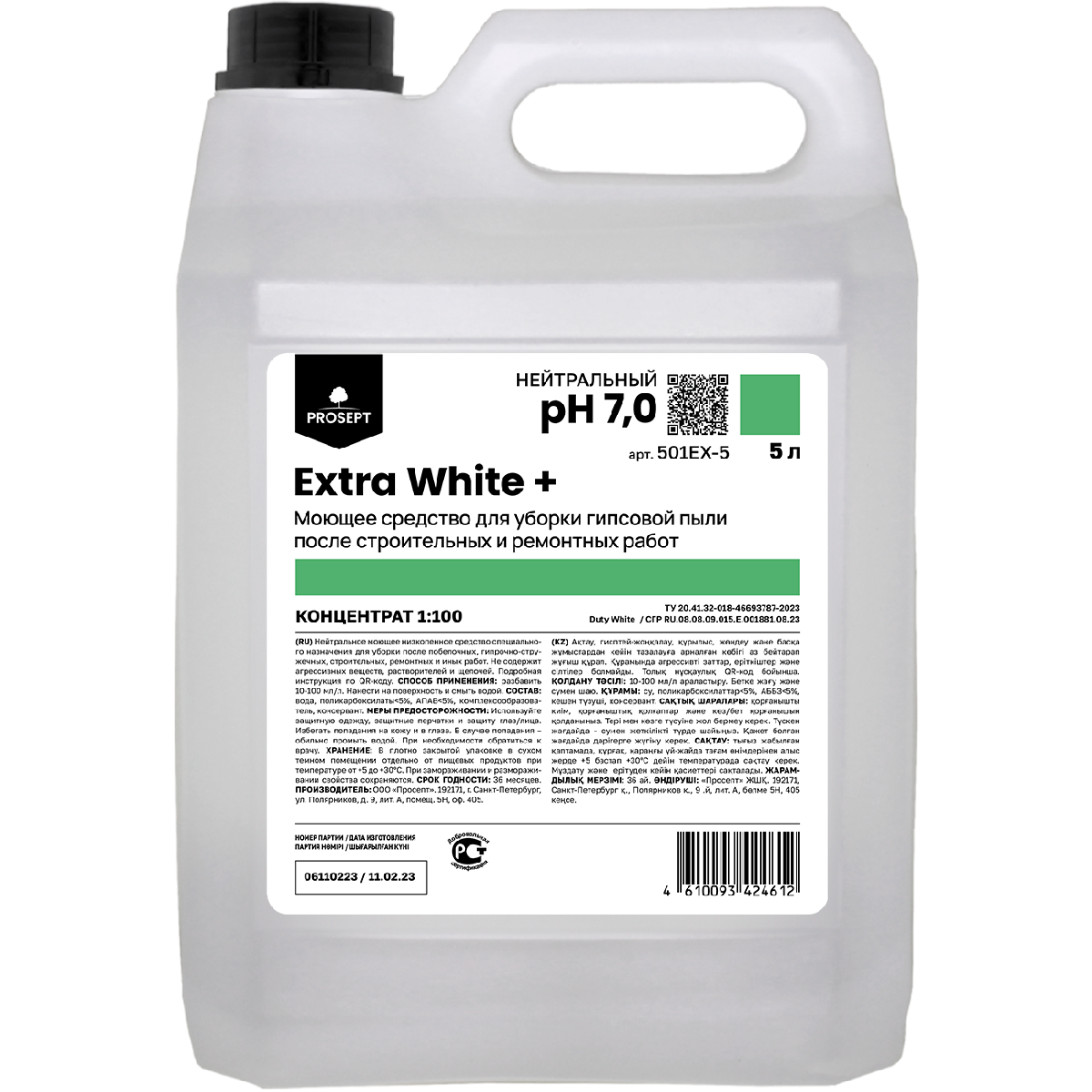 Средство чистящее Prosept Extra White+ для уборки гипсовой пыли после строительных работ 5л